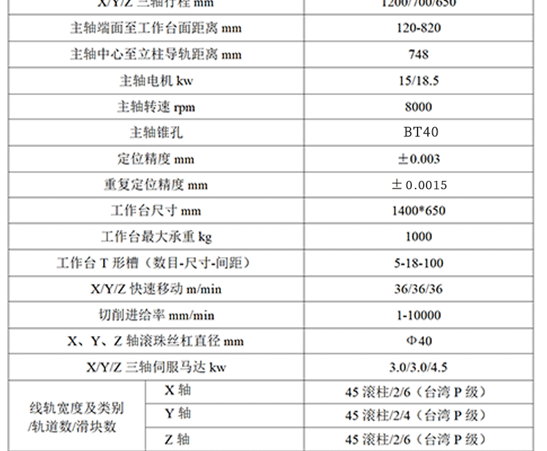 立式加工中心性能特点,机床底座采用超宽矩形导轨结构,超宽底座接触面(Z轴可以选做硬轨)以保证机床加工时的精度和刚性。工作台筋板加固,加强工作台承重,立柱内部采用X型结构,超强抗扭抗拉,重切削不变形;底座集成双螺旋排屑槽,最大程度减少铁屑过多引起排屑器的跳动;台湾高速变速箱主轴8000rpm,标配配台湾高速变速箱主轴,台湾圆盘机械手式24刀库,冷却系统采用大流量,双高扬程水泵,保证在高速切削下具有充分的冷却。系统配置可选FANUC Oi MF、广数25I数控系统、新代22MA数控系统、KNDK2000MF3i数控系统、三菱数控系统