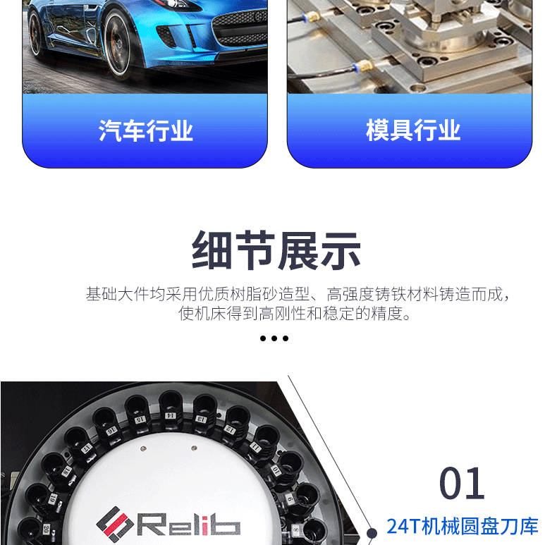 立式加工中心性能特点Y、Z轴采用滚柱导轨均45号大线轨承载,高刚性,低摩擦,低噪音。X、Y采用4滑块,Z轴采用6滑块高刚性,可重切削,吸震性好。(Z轴)配大功力伺服电机,Z轴驱动电机具有良好的负载特性,分离式带急停电子手轮,台湾圆盘机械手式24刀库,标配台湾金器气路二联件,系统配置可选FANUC Oi MF、广数25I数控系统、新代22MA数控系统、KNDK2000MF3i数控系统、三菱数控系统,可选配数控第四轴&自动排